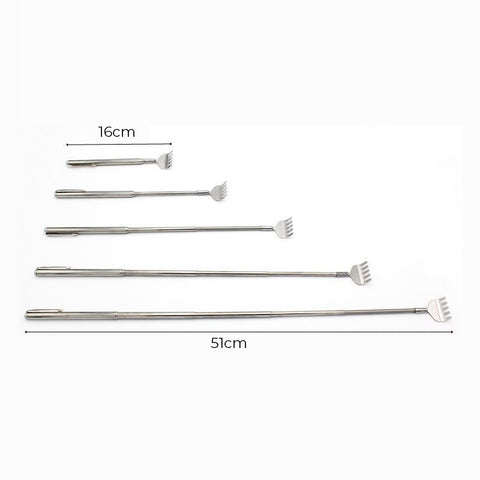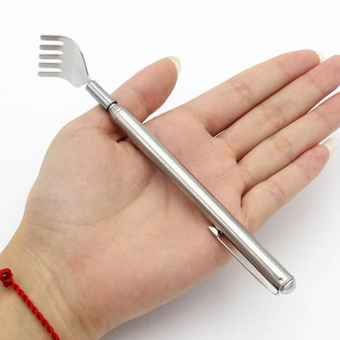 Laget av høykvalitets- rustfritt stål som gjør den solid og rustfri. Med lagt til feste for skjortelomme eller belte på håndtaket. Nyttig når du vil klø på deler av kroppen som hendene ikke når. Kan forlenges til 51 cm.
