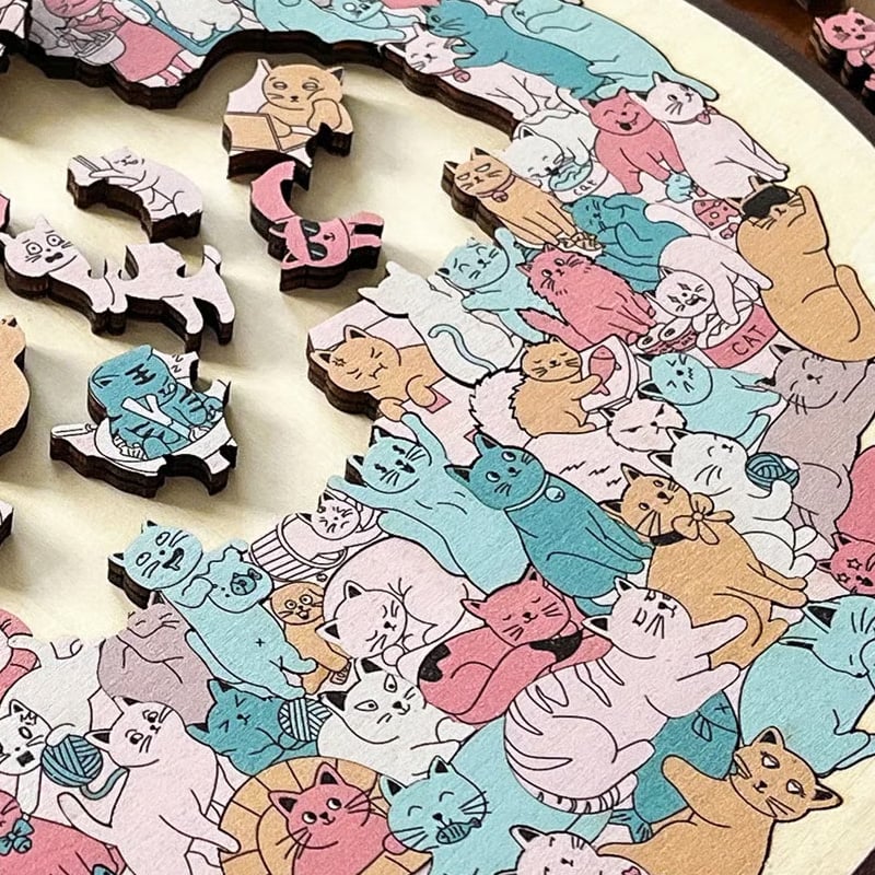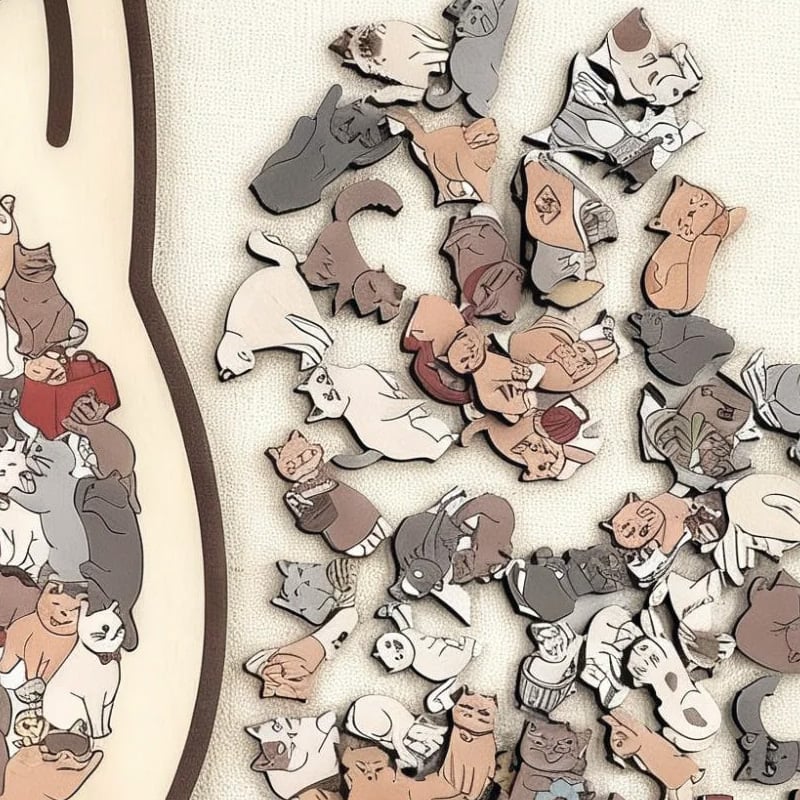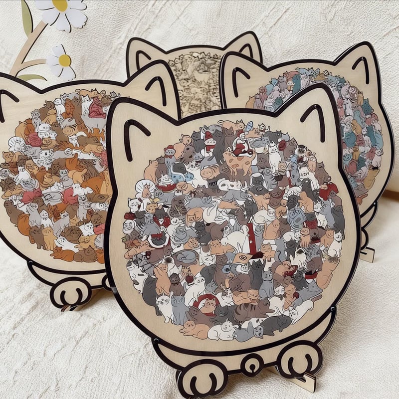 - 🎨 Utsøkt Kattedesign: Intrikat utskåret i en vakker katteform, som kombinerer glede ved å løse gåter med en fantastisk appell til hjemmedekor.