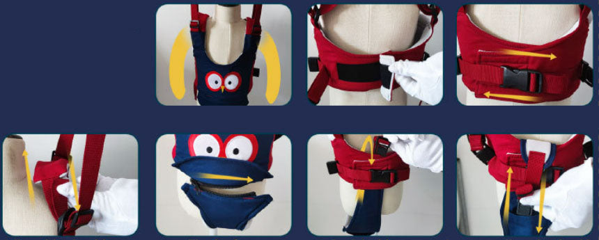 - Etter 13 måneder, når babyen kan gå, kan denne byttes til tilbaketrekk for å enkelt justere holdning når babyen lener seg fremover.