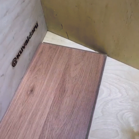 - Trinn 1: Skyv de to plastføttene inn i hjørnet av veggen og juster dem med veggen.