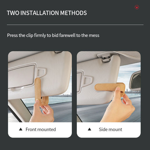 Laget av kvalitets aluminiumslegering og skinn, er brilleklemmen mer strukturert og holdbar; Den vil ikke skli eller skade solskjermen, solid og praktisk, noe som gjør oppbevaring enkelt.