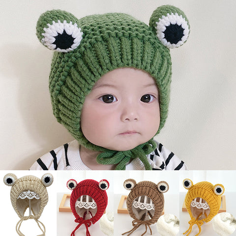 1 x Søt tegneseriefrosk strikket vinterlue for barn