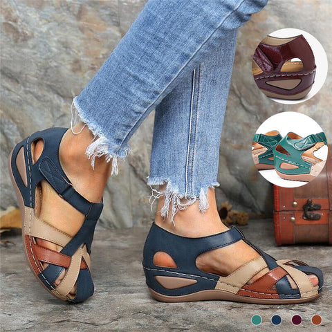 Dame Retro Runde Tå Kryss Spenne Sandaler