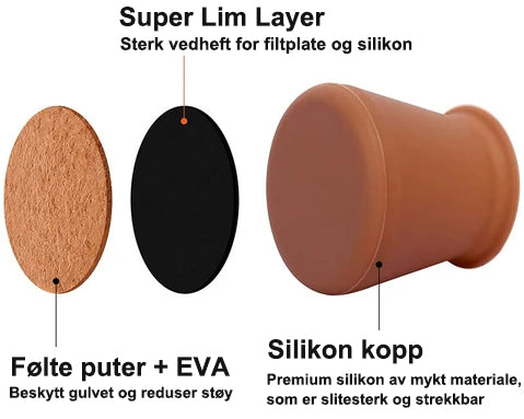 Sklisikker bunnpute / filtpute forhindrer riper og støy uten å etterlate merker. Den fleksible silikon-boksen er lett å slip-on, noe som gir stolben et tettsittende grep som en hanske.