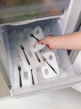 - Leveres med en gaffel for å holde hendene rene. Liten isboks kommer med 1 gaffel