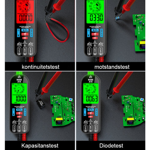 [Rødt og grønt bakgrunnsbelysning]: Det intelligente digitale multimeteret har en høyoppløselig LCD-skjerm med rødt og grønt bakgrunnsbelysning, noe som forbedrer leseopplevelsen betraktelig.