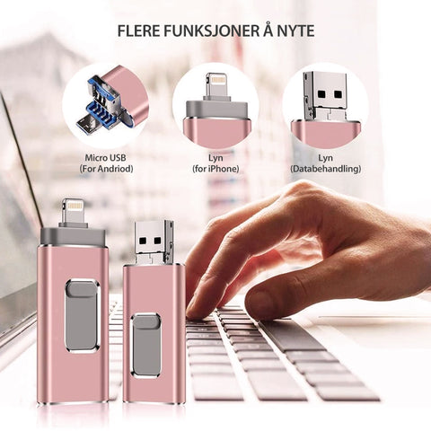 Bærbar USB-minnepinne for iPhone, iPad og Android
