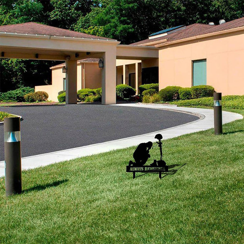 Vakker og stolt: Vis din respekt og takknemlighet til heltene med denne soldatsilhuetten. Den har et knelende soldatformet design og et rent svart utseende som vil gjøre uterommet ditt vakkert og stolt.
