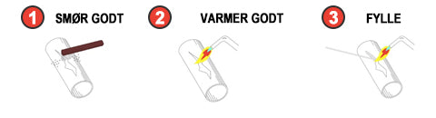 Forsiktighet: Bruk aldri varme direkte på stangen, da den vil smuldre, og hvis du klarer å smelte stangen direkte, vil sveisen lett brytes. Husk at å smelte stangen direkte er en feil måte, og det blir smulete sveiser.