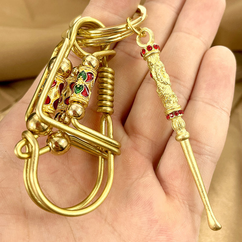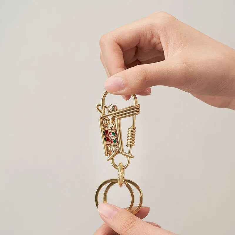 HOLDERBAR OG STERK: Nøkkelringen er laget av massivt messing som er solid og holdbart. Med sterke lagre kan den trygt koble de to endene av gjenstanden.