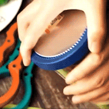 • Grep, vri og nyt  - Veldig enkel å bruke. Bare sett krukken eller flaskelokket inn i åpningen, grepet og vrien av passende størrelse.