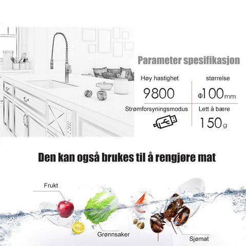 - USB -STRØMFORSYNING - Minimaskinoppvaskmaskinen lades opp via USB, og du kan koble til mobilenheten din, uten installasjon, praktisk, vanntett, renere rengjøring. Den har boblespraybørste, 2D -strømning, nedsenking, ultralydbølge.
