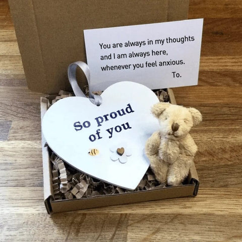 Uttrykk din kjærlighet, omsorg og støtte med vårt Thoughtful Sentiments Wooden Heart, akkompagnert av en sjarmerende Tiny Teddy. Dette håndlagde trehjertet er den perfekte gaven for å fortelle noen at du tenker på dem under livets ulike opp- og nedturer.