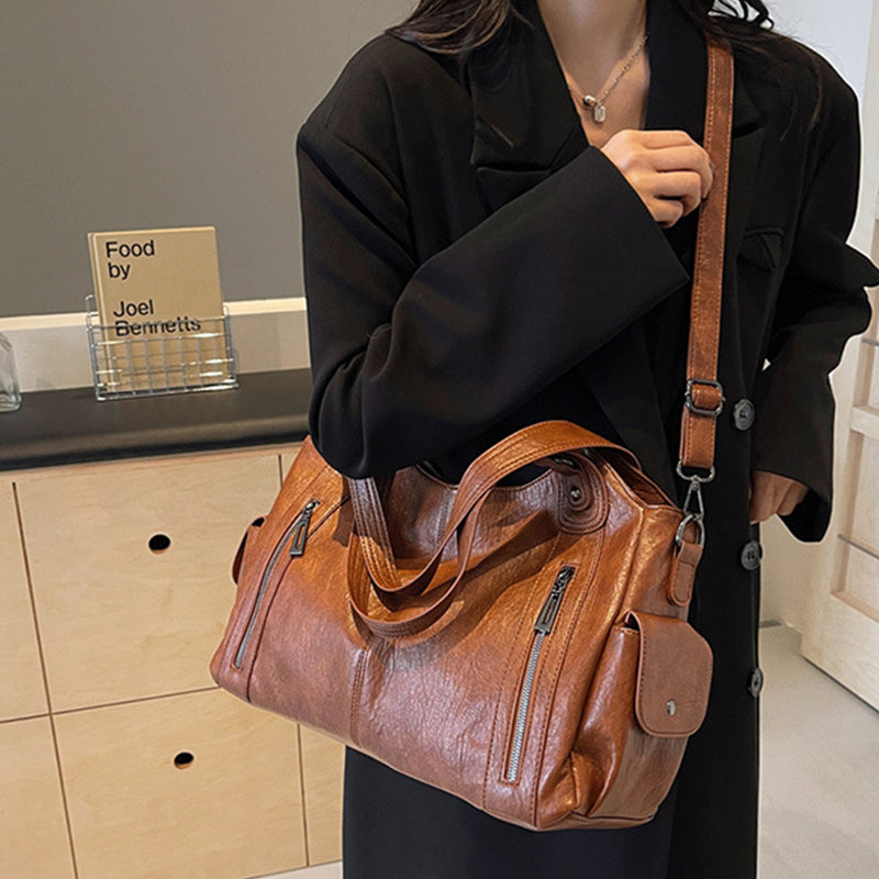 • Komfort møter bekvemmelighet: Laget med komforten din i tankene, den brede, justerbare skulderstroppen sørger for at det å bære tunge gjenstander føles som en lek. Enten du haster gjennom byen eller reiser lett, sikrer det ergonomiske designet heldags komfort uten belastning, noe som gjør det til den ideelle følgesvennen for den moderne kvinnen på farten.