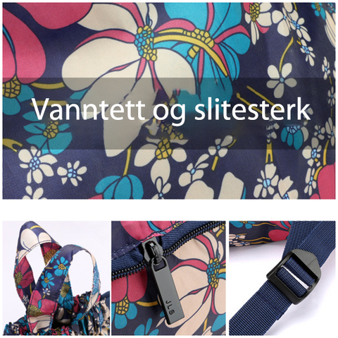 - Ryggsekkens overflate er laget av nylonduk. Vanntett og slitesterk.