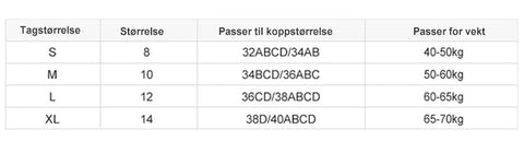 Se størrelsestabellen for å unngå unødvendige problemer.