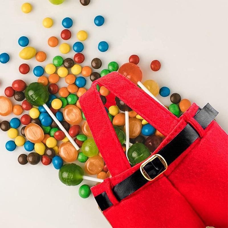 - 🎄Søte bukser: Røde nissebukser gjør den søt og koselig, og masse godteri kan fylles i hvert ben.