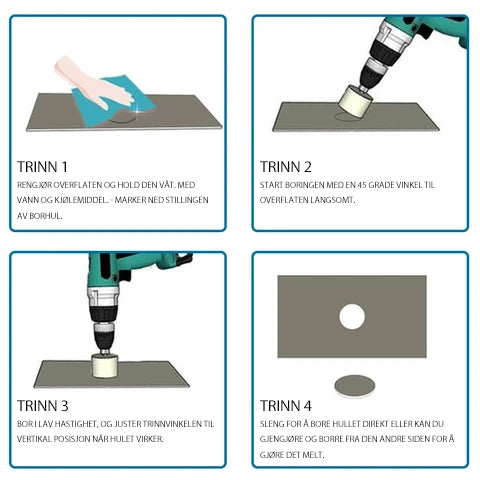 - Utmerket for Ä lage et rent og nÞyaktig hull pÄ glass og fliser.