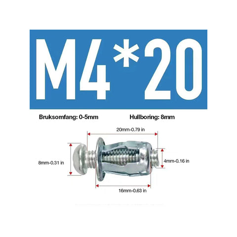 1 sett * Ekspansjonsskrue kronbladmutter (50 stk)