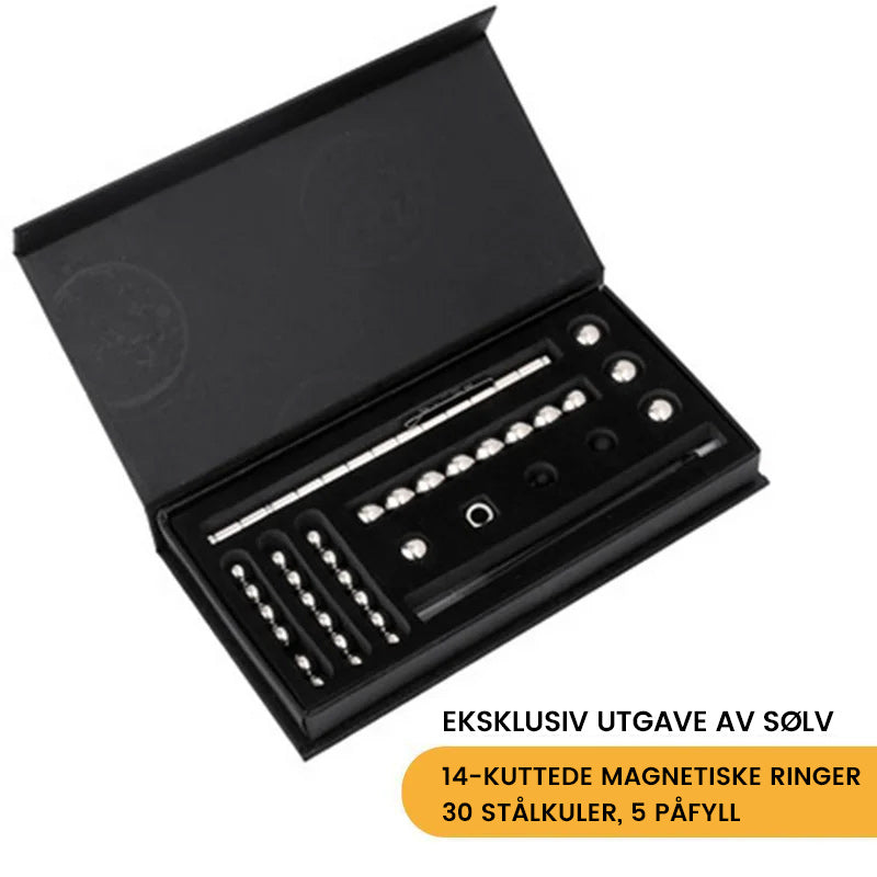 • Magnetisk Lek: Inkluderer 13 magnetiske ringer og 12 stålkuler, og gir uendelige kombinasjoner og transformasjoner.