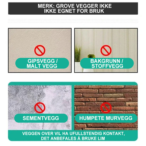 • Tilgjengelig hvor som helst: Passer til alle slags vegger, for eksempel keramiske fliser, marmor, rustfritt stĂ„l, glass, massive trevegger og andre glatte vegger. PĂ„minnelse: grove vegger er ikke egnet for bruk.