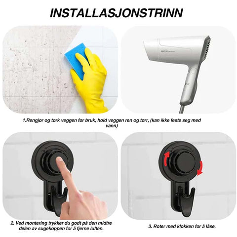 Ikke behov for boring, spiker, lim, montering og bruk uten skader på veggen.