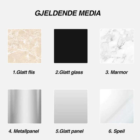 - Egnet for ulike overflater, glass, fliser, marmor, metall, malt tre og til og med strukturerte overflater, som frostet glass.