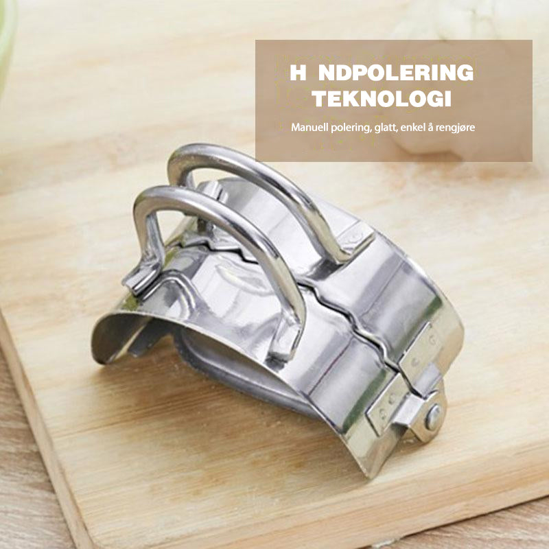- Speilpolert overflate gjør det enkelt å rengjøre, slik at matrester ikke stikker inn mellom sømmene. Det glatte hengslet muliggjør ryddig og effektiv forberedelse av dumpling