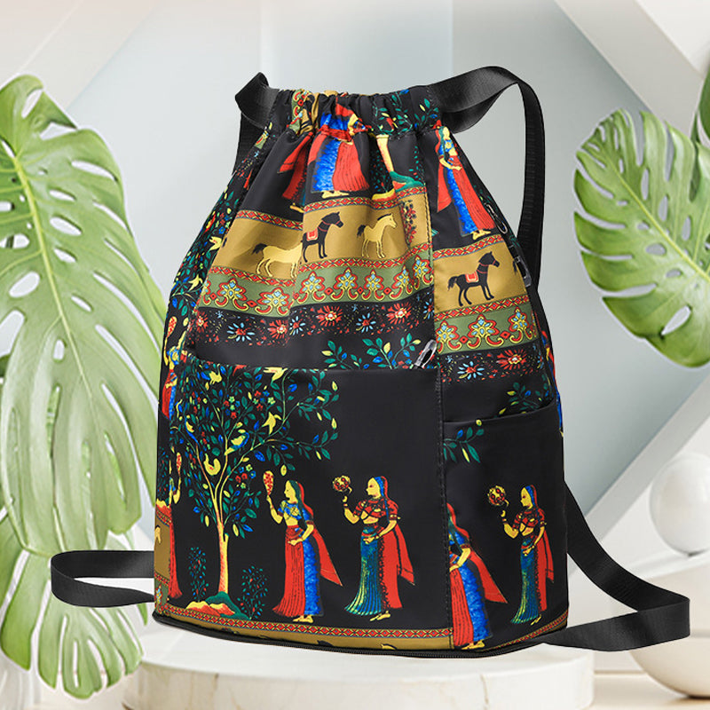 • Snorelukking: Ryggsekken har en praktisk snorelukking som lar deg få tilgang til eiendelene dine raskt og enkelt. Trekk bare i snorene for å sikre eller åpne sekken uten anstrengelse.