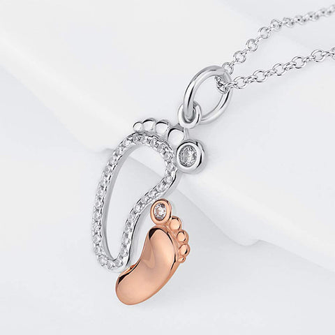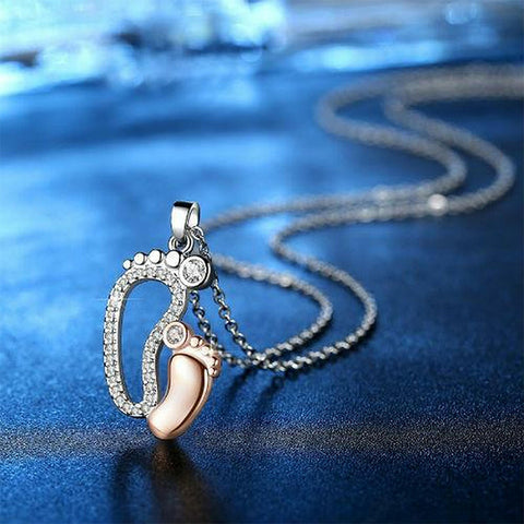 • Dette nydelige halskjedet med fotavtrykk belagt med krystallkubisk zirkon, som betyr kjĂŠrligheten mellom mor og baby.