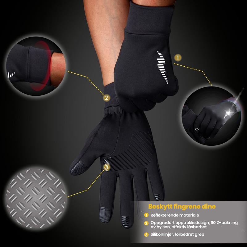 Hanskene er den ultimate termiske følgesvennen i all slags vær, og tilbyr essensiell varme, et overlegent sklisikkert grep og avgjørende berøringsskjermkompatibilitet for sømløs utendørsaktivitet og tilkobling.