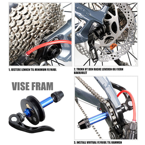 - 🚲Praktisk og fleksibel: Lar sykkelen skiftes med hjulet fjernet, og girskifteren kan flyttes. Enkel å bruke: Bare ta av bakhjulet av sykkelen, Klem fast kjedenholder eller dum knutepunkt på dropout.
