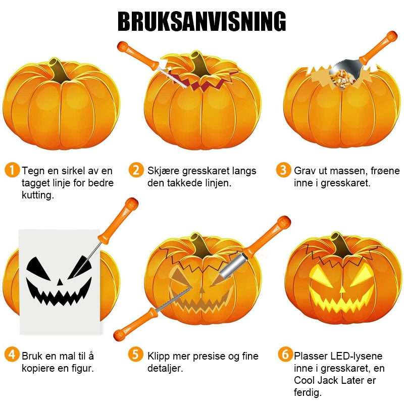 - Med et sett med dette Halloween gresskarutskjæringssettet kan du lage ekte gresskarlykter og nyte morsom tid.